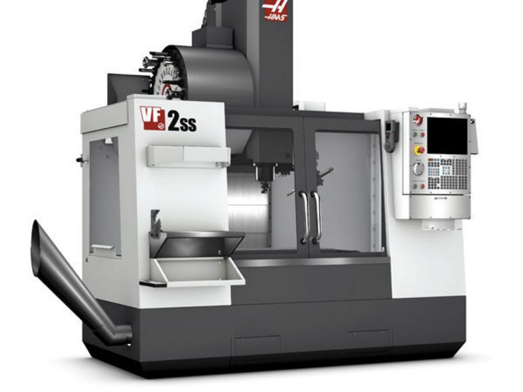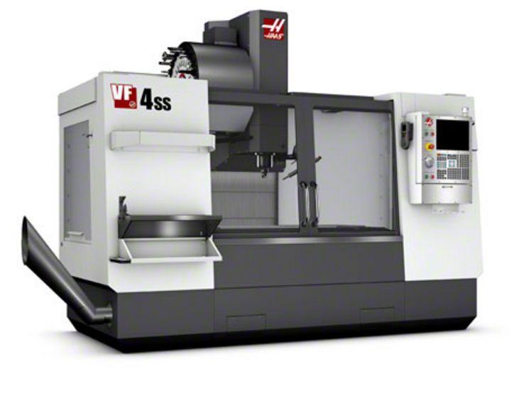 2) Il VF4SS leggermente più grande, con una tavola rotante a 2 assi aggiuntiva per la produzione di componenti più piccoli a 5 assi. Sono già previsti piani per l'automazione di questa macchina.