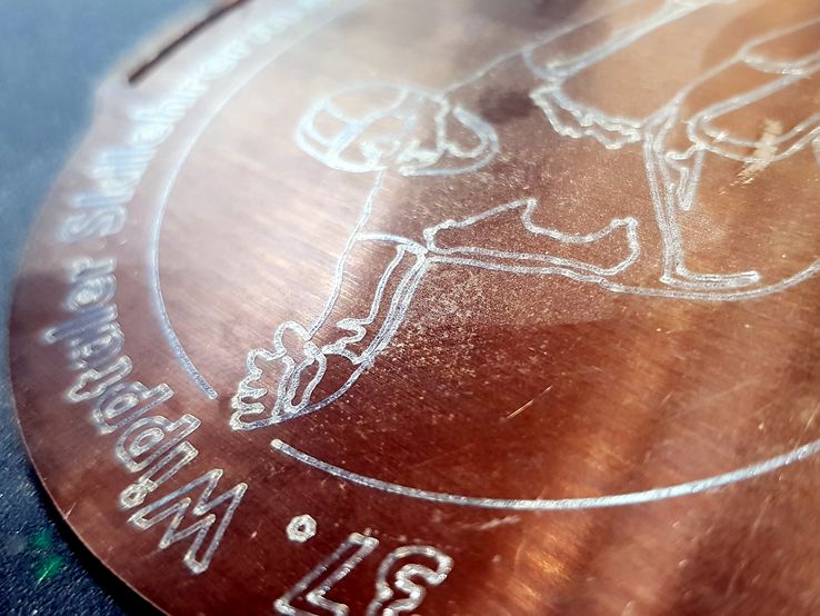 Mittels unseres Kohlenstoffdioxidlasers können wir verschiedenste Materialien wie Edelstahl, beschichtete Metalle, Holz, Kunststoffe, Glas, Stein oder auch Leder gravieren, wobei die 100-Watt-Laseranlage eine maximale Bearbeitungsbreite und -länge 1200 x 900 mm umfasst. Unser erfahrenes Team berät Sie gerne, sodass Beschriftungen, Logos, Fotos und vieles mehr optimal zur Geltung kommen. Zudem fertigen wir Trophäen nach Ihren Vorstellungen an. In der Bildergalerie links finden Sie dazu einige Beispiele.
